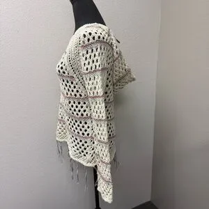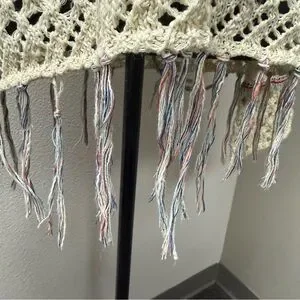 Poof! by Free People Open Knit Fringe Sweater Cream Boho Festival Beach Cover