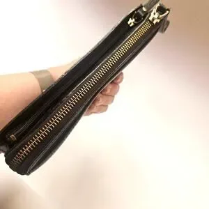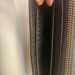 From my closet! I purchased this wallet in probably three colors over the years- the Layton is one of the best Kate Spade Wristlet styles ever. This wallet is black saffino leather, with beige interior. All zips work and wrist strap is sturdy. Please see photos for all details.