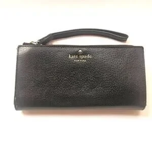 Kate Spade Wristlet, Black Leather, Layton Wallet, Beige Interior