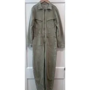Free People Lennox Denim Utility Jumpsuit Army Green Size S