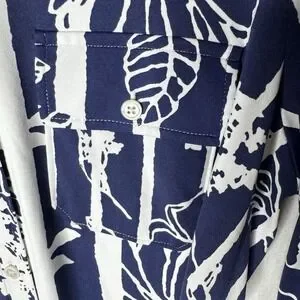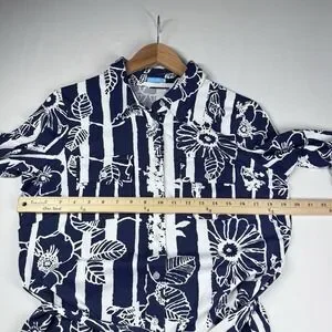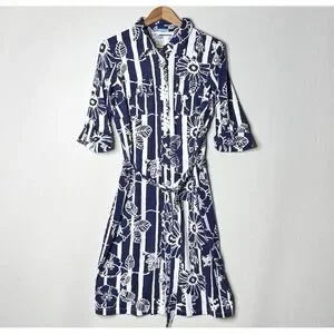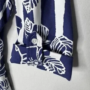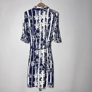 J McLaughlin Navy Floral Shirt Dress Sz M / L Belted Catalina Career Office READ