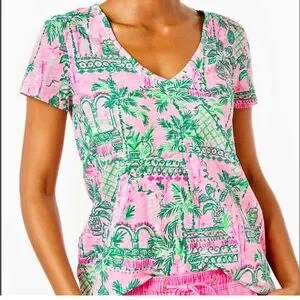 Lilly Pulitzer Wtta V Neck T Shirt Top Wonens Large Mandela Baby's Always Worth