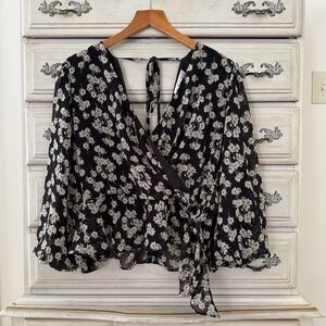 Black Floral Fairy Faux Wrap Top