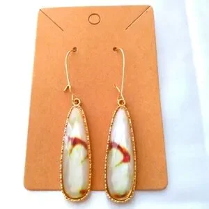 #2 New! 18k Gold Plated Marbled Stone Dangle Earrings