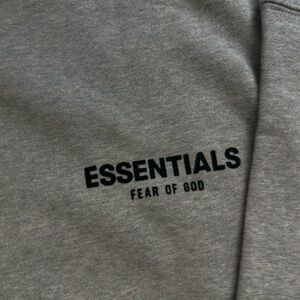 Classic heather gray hoodie by Fear of God Essentials. Features a minimalist design with front logo detail. Ideal for everyday wear.