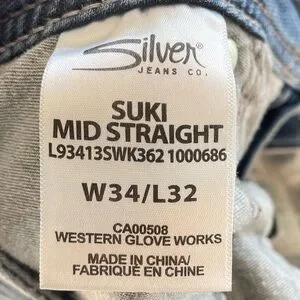 Silver Jeans Co Suki Indigo Straight Leg W34 L32