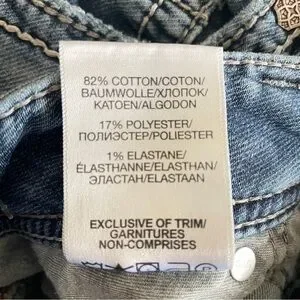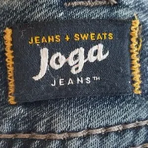 • Joga fabric (denim/knit hybrid), 5-pocket styling, contrast stitching, zip fly with button closure, contoured waistband to prevent gapping