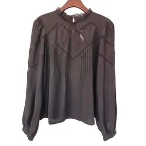 Madewell Lace Inset Mockneck Blouse Lace-Trim Women Small Brown NWT $128 NY351