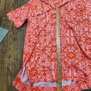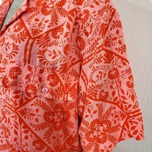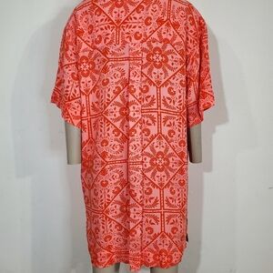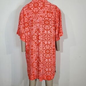 Asos Pink Red Floral Bandana Shirt Dress Buttoned Oversized Short Sleeve Sz 8