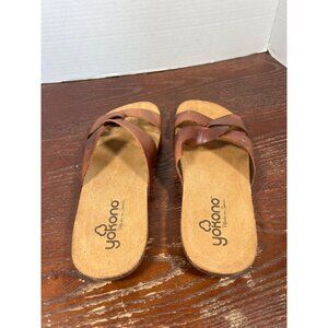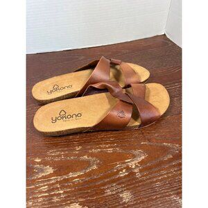 Yokono Womens Brown Leather Sandals With Cork Sole Slip-On Size 8