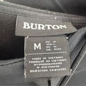 Classic black hoodie with Burton logo. Comfortable and versatile. Ideal for everyday wear or for snowboarding. “Burton” lettering on hood.