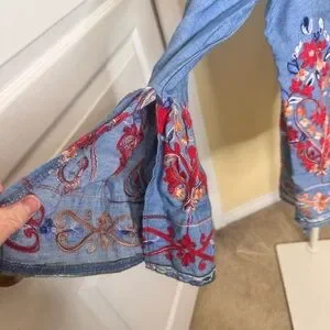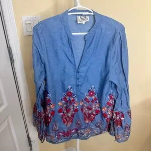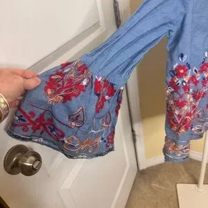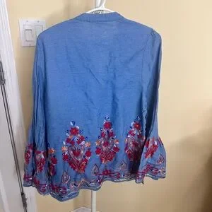 Jaase Embroidered Light Blue Bell-Sleeve Tunic size medium