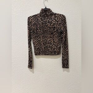 Zara Leopard Print Cropped Turtleneck Top Size M Animal Print Stretch