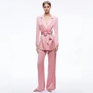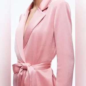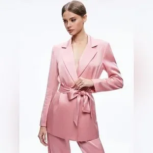 NWT $595 Alice + Olivia Karley Tie Belt Wrap Satin Blazer Coat