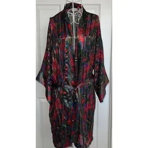 Vintage Gold Label Victoria's Secret Short Robe Large Rose Floral Paisley Jewel