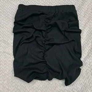 ROMWE Black Ribbed Ruched Mini Skirt