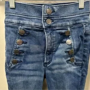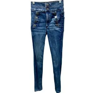 Express high rise ankle legging in excellent pre-owned condition. No flaws/damage. Front faux pockets, button detailing. Materials tag in pics.