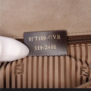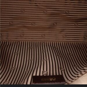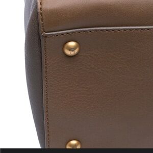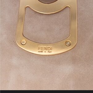 The Fendi calfskin colorblock Anna satchel is a sophisticated accessory that combines style and functionality. This satchel features a premium leather body, complemented by a flat leather top handle and a detachable flat leather strap for versatile carrying options. The front flap is secured with a magnetic snap closure, providing easy access to the interior, which includes a zip pocket for organized storage. Please note that the lining around the magnetic snap closure has been repainted. The bag is in good preowned condition and shows wear consistent with use.