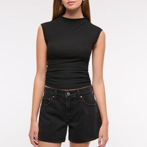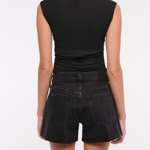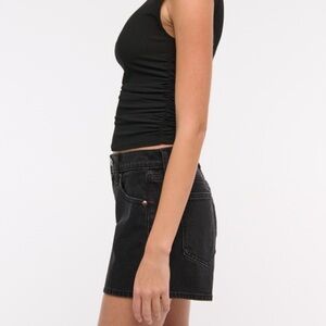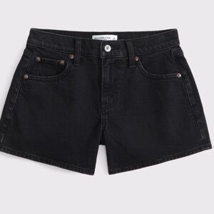 Brand new Abercrombie & Fitch Mid-Rise A-Line Shorts in a sleek black wash denim. These shorts are a flattering, on-trend style designed with an A-line silhouette that gives a skort-like look—fitted at the waist and relaxed through the hips and thighs.