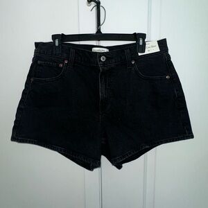 Abercrombie Mid Rise A-Line Shorts Black Denim Size 31 NWT 4” Inseam