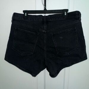 abercrombie shorts, mid rise denim shorts, black jean shorts women, a line shorts, skort style shorts, vintage denim shorts, summer shorts outfit, abercrombie size 31, black denim a line shorts