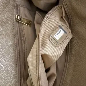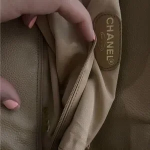 Authentic CHANEL beige caviar leather CC tortoise top handle satchel bag