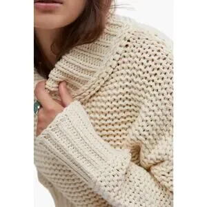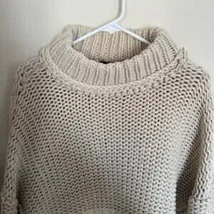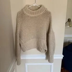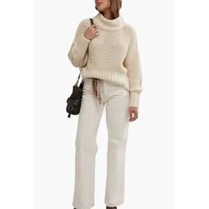 Free People Chunky Knit Cream My Only Sunshine Pullover Mockneck Sweater Preppy