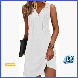 Polyester Rayon Spandex V-Neck Sleeveless Beach Sundress with Pockets