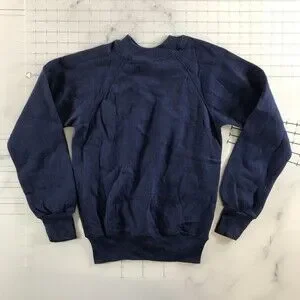 Keywords: vintage kids sweatshirt, navy blue crewneck, American Fleecewear Creslan acrylic, unisex youth fleece pullover