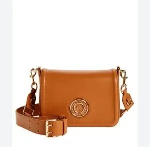 Logo hardware brings signature shine to a messenger-style crossbody bag crafted from smooth leather in a neutral, easy-to-match hue. 9.05" x 6.29" x 3.54" Magnetic-snap flap closure Removable, adjustable crossbody strap Interior slip pocket; zip pocket Lined Leather Imported