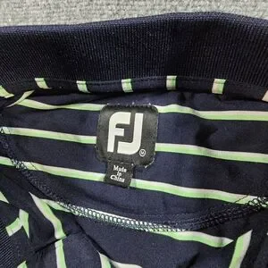 FootJoy Navy Lime Striped Golf Polo Shirt Mens M BP Logo