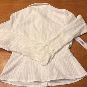 Chic white cotton button-down striped blouse from Princess Polly. Perfect for casual or dressy looks. Missing partial brand tags but authentic brand. See photos for measurements.