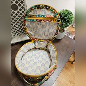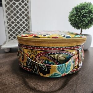 Vera Bradley PROVENCAL FLORAL Hatbox Round Cosmetic Travel Makeup Tote Bag Vinyl