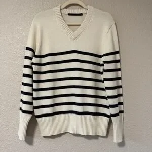 NWOT Jenni Kayne Cotton Kate V-Neck Sweater in Ivory/Navy Stripe. Size XS. Slightly oversized fit- easily could fit a size small!