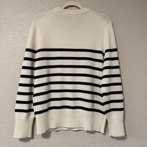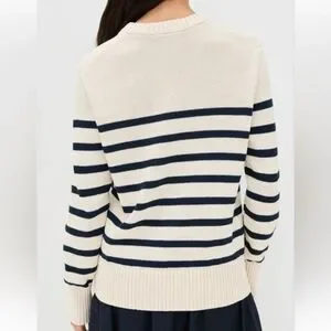 NWOT Jenni Kayne Cotton Kate V-Neck Sweater Ivory Navy Stripe XS-S Oversized