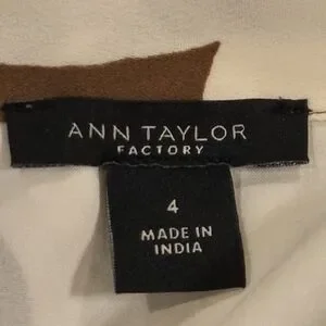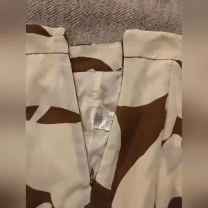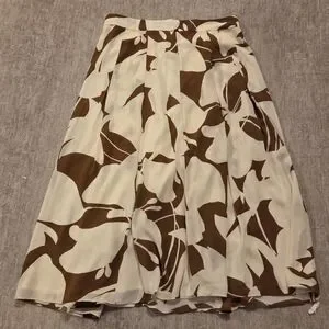 Ann Taylor midi skirt with large floral pattern. Flowy silhouette with soft drape. Neutral brown and cream palette for easy pairing. Polished look suitable for day or evening.