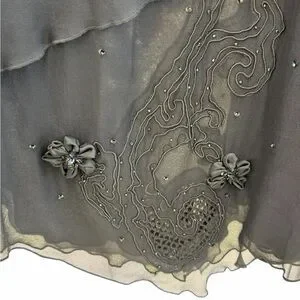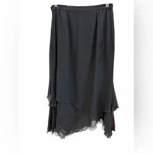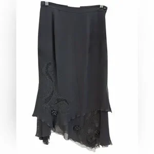 Vintage Vera Cristina Black Embellished Layered Silk Midi Skirt Evening Style