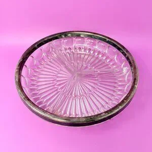 Leonard Silver pieces like this were especially popular in the 1970s, reflecting the era’s love of polished metals paired with decorative crystal for entertaining and display. A timeless piece that works beautifully for holiday tables, bar carts, or vintage glass collections.