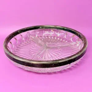 Vintage 1970s Leonard Silver Rim Crystal Divided Bowl