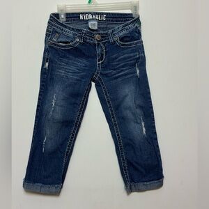 Hydralic Women's Distressed Blue Capri Jeans size 3/4 (G6)