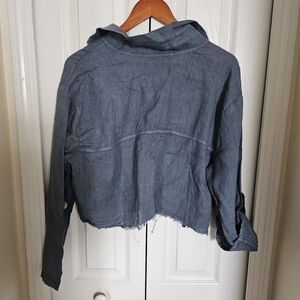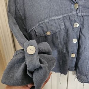 Made in Italy 100% Raw Linen Cropped Button Shirt Blue Lightweight Boho Top S/M.