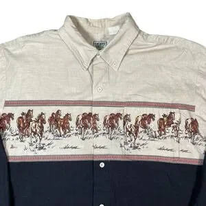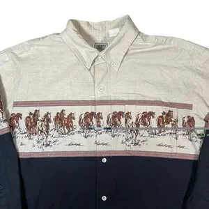 Vtg Roper Shirt Mens XL Rodeo Western Cowboy Horse Graphic 90s Colorblock Ranch