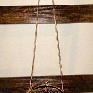 Structured silhouette with a classic clasp closure and delicate chain strap for optional shoulder wear. A standout accessory that elevates any outfit.