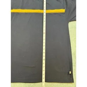 Point Zero black t-shirt with yellow stripe detail across the chest and shoulders. Clean casual design with a sporty streetwear look that is easy to style. Soft fabric with a comfortable fit, great for everyday wear. Good preowned condition with normal wear.