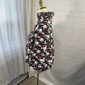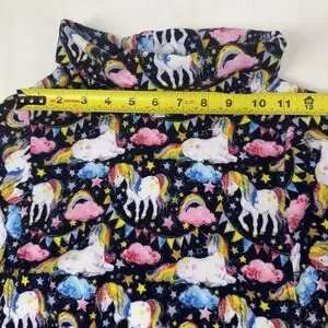 Beautiful unique handmade poncho, lined with soft material on inside with "made by grandma with love" label stitched on the inside. Cozy and warm and perfect for chilly / cooler days. Has two little holes in front for arms. Gorgeous and fun colorful unicorn pattern on the outside. Such Lisa Frank vibes (if you know you know).