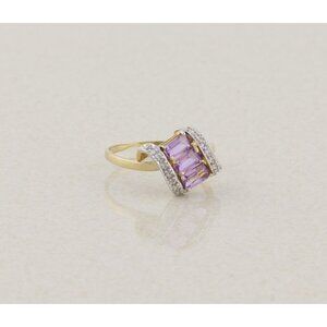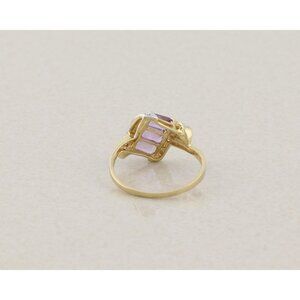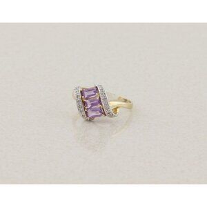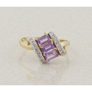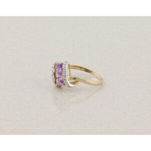 14k Yellow Gold Natural Amethyst and Diamond Ring Size 8 3/4