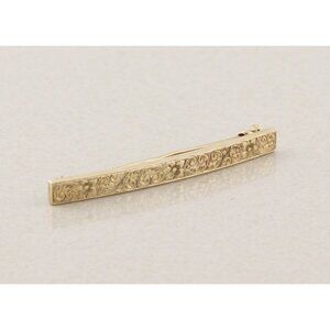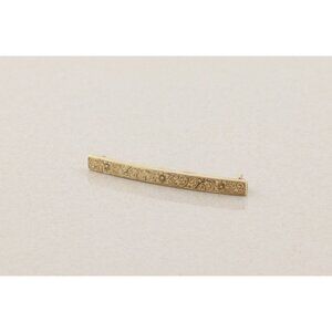 14k Yellow Gold Antique Art Deco Bar Pin Pretty Etched Flower Pattern 2" x 3/16"