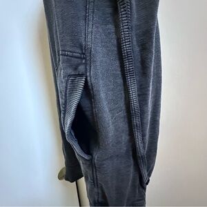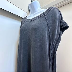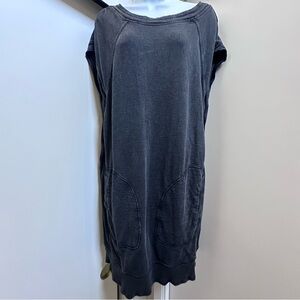 Casual sleeveless sweatshirt dress in washed black. Soft, relaxed fit with raw-edge styling. Easy slip-on style for effortless wear.
