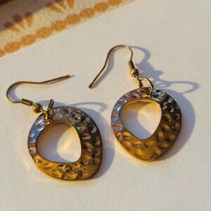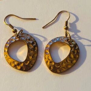 Vintage estate sale Hammered Gold-Tone Open Drop Earrings -