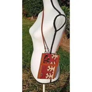EM May Embroidered Handwoven Wool Leather Bag Multicolor Made In Turkey Kilim